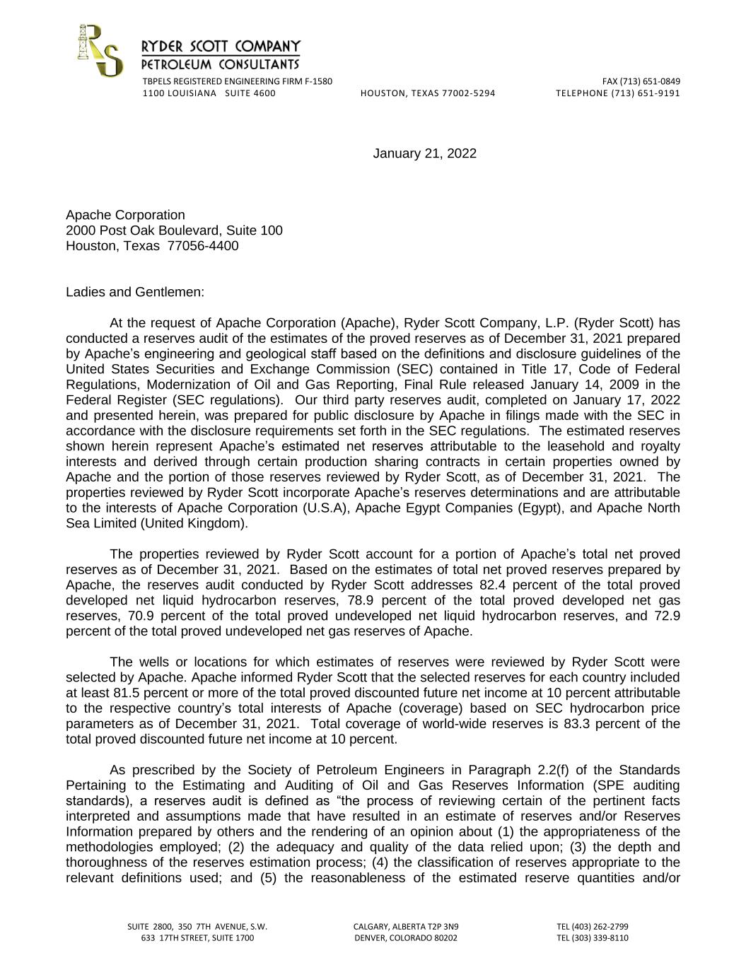 Portions of APA Corporation’s proxy statement relating to its 2022 annual meeting of stockholders (the APA Proxy Statement) have been incorporated by reference into Part III hereof.