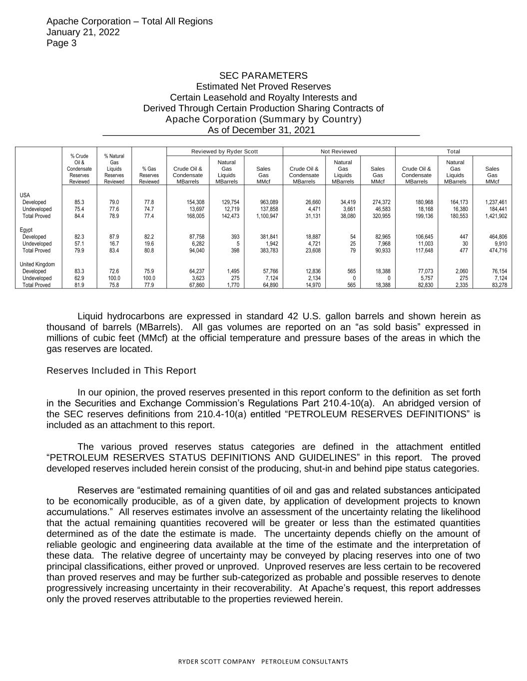 During 2021, the Company added approximately 102 MMboe from extensions, discoveries, and other additions. The Company recorded 77 MMboe of exploration and development adds in the U.S., comprising 59 MMboe in the Permian Basin with the remaining 18 MMboe in the Texas Gulf Coast. The Permian Basin drilling programs targeted the Woodford, Barnett, Bone Springs, and Spraberry, while the Texas Gulf Coast focused on the Austin Chalk. International operations contributed 25 MMboe of exploration and development adds, with Egypt contributing 22 MMboe from onshore exploration and appraisal activity primarily in the Khalda Area concession post-PSC modernization. The North Sea contributed 3 MMboe. The Company had combined upward revisions of previously estimated reserves of 107 MMboe. Upward revisions related to changes in product prices accounted for 85 MMboe. Engineering and performance upward revisions accounted for 22 MMboe, with the modernized PSC in Egypt resulting in an increase of 57 MMboe, partially offset by other downward revisions of 35 MMboe across all of the Company’s geographic areas of operation. The Company also sold 28 MMboe of proved reserves associated with U.S. divestitures, primarily related to Permian Basin assets.