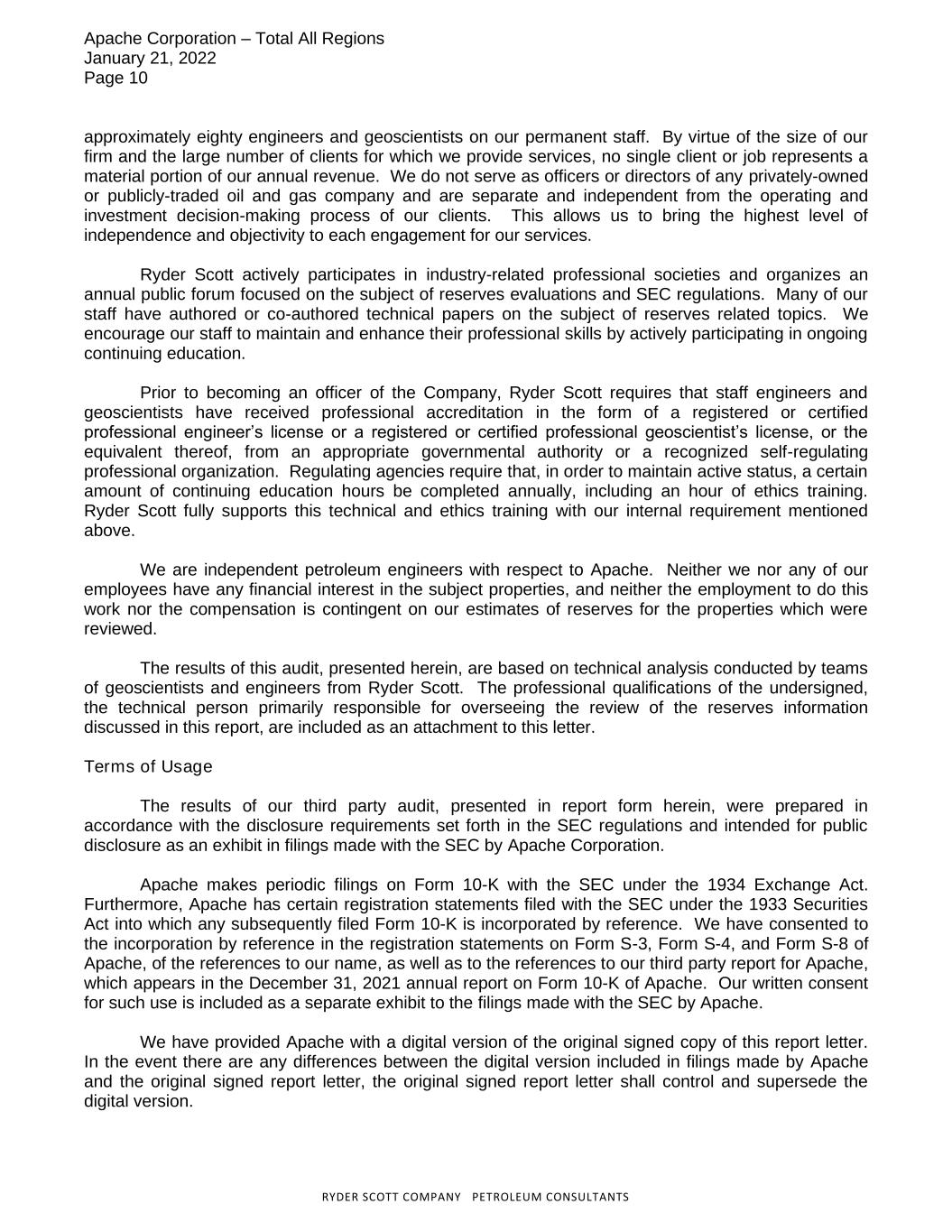 apa-20211231false2021FY0000006769—33.3366.67http://fasb.org/us-gaap/2021-01-31#DebtCurrenthttp://fasb.org/us-gaap/2021-01-31#DebtCurrenthttp://fasb.org/us-gaap/2021-01-31#LongTermDebtAndCapitalLeaseObligationshttp://fasb.org/us-gaap/2021-01-31#LongTermDebtAndCapitalLeaseObligationshttp://fasb.org/us-gaap/2021-01-31#OtherLiabilitiesCurrenthttp://fasb.org/us-gaap/2021-01-31#OtherLiabilitiesCurrenthttp://fasb.org/us-gaap/2021-01-31#OtherLiabilitiesNoncurrenthttp://fasb.org/us-gaap/2021-01-31#OtherLiabilitiesNoncurrent0.0500000067692021-01-012021-12-3100000067692022-01-31xbrli:shares00000067692021-06-30iso4217:USD00000067692021-12-310000006769us-gaap:DisposalGroupDisposedOfBySaleNotDiscontinuedOperationsMemberapa:PermianRegionMember2020-01-012020-12-310000006769apa:PermianRegionMember2020-01-012020-12-3100000067692020-01-012020-12-310000006769apa:OilAndGasExcludingPurchasedMember2021-01-012021-12-310000006769apa:OilAndGasExcludingPurchasedMember2020-01-012020-12-310000006769apa:OilAndGasExcludingPurchasedMember2019-01-012019-12-310000006769us-gaap:OilAndGasPurchasedMember2021-01-012021-12-310000006769us-gaap:OilAndGasPurchasedMember2020-01-012020-12-310000006769us-gaap:OilAndGasPurchasedMember2019-01-012019-12-310000006769us-gaap:OilAndGasMember2021-01-012021-12-310000006769us-gaap:OilAndGasMember2020-01-012020-12-310000006769us-gaap:OilAndGasMember2019-01-012019-12-3100000067692019-01-012019-12-310000006769apa:NoncontrollingInterestEgyptMember2021-01-012021-12-310000006769apa:NoncontrollingInterestEgyptMember2020-01-012020-12-310000006769apa:NoncontrollingInterestEgyptMember2019-01-012019-12-310000006769apa:NoncontrollingInterestALTMMember2021-01-012021-12-310000006769apa:NoncontrollingInterestALTMMember2020-01-012020-12-310000006769apa:NoncontrollingInterestALTMMember2019-01-012019-12-3100000067692020-12-3100000067692019-12-3100000067692018-12-310000006769us-gaap:VariableInterestEntityPrimaryBeneficiaryMember2021-12-310000006769us-gaap:VariableInterestEntityPrimaryBeneficiaryMember2020-12-31iso4217:USDxbrli:shares0000006769apa:NoncontrollingInterestEgyptMember2021-12-310000006769apa:NoncontrollingInterestEgyptMember2020-12-310000006769apa:NoncontrollingInterestAltusMember2021-12-310000006769apa:NoncontrollingInterestAltusMember2020-12-310000006769us-gaap:CommonStockMember2018-12-310000006769us-gaap:AdditionalPaidInCapitalMember2018-12-310000006769us-gaap:RetainedEarningsMember2018-12-310000006769us-gaap:TreasuryStockMember2018-12-310000006769us-gaap:AccumulatedOtherComprehensiveIncomeMember2018-12-310000006769us-gaap:ParentMember2018-12-310000006769us-gaap:NoncontrollingInterestMember2018-12-310000006769us-gaap:RetainedEarningsMember2019-01-012019-12-310000006769us-gaap:ParentMember2019-01-012019-12-310000006769apa:NoncontrollingInterestEgyptMemberus-gaap:NoncontrollingInterestMember2019-01-012019-12-310000006769apa:NoncontrollingInterestALTMMemberus-gaap:NoncontrollingInterestMember2019-01-012019-12-310000006769us-gaap:AdditionalPaidInCapitalMember2019-01-012019-12-310000006769us-gaap:CommonStockMember2019-01-012019-12-310000006769us-gaap:TreasuryStockMember2019-01-012019-12-310000006769us-gaap:AccumulatedOtherComprehensiveIncomeMember2019-01-012019-12-310000006769us-gaap:CommonStockMember2019-12-310000006769us-gaap:AdditionalPaidInCapitalMember2019-12-310000006769us-gaap:RetainedEarningsMember2019-12-310000006769us-gaap:TreasuryStockMember2019-12-310000006769us-gaap:AccumulatedOtherComprehensiveIncomeMember2019-12-310000006769us-gaap:ParentMember2019-12-310000006769us-gaap:NoncontrollingInterestMember2019-12-310000006769us-gaap:RetainedEarningsMember2020-01-012020-12-310000006769us-gaap:ParentMember2020-01-012020-12-310000006769apa:NoncontrollingInterestEgyptMemberus-gaap:NoncontrollingInterestMember2020-01-012020-12-310000006769apa:NoncontrollingInterestALTMMemberus-gaap:NoncontrollingInterestMember2020-01-012020-12-310000006769us-gaap:AdditionalPaidInCapitalMember2020-01-012020-12-310000006769us-gaap:CommonStockMember2020-01-012020-12-310000006769us-gaap:TreasuryStockMember2020-01-012020-12-310000006769us-gaap:AccumulatedOtherComprehensiveIncomeMember2020-01-012020-12-310000006769us-gaap:NoncontrollingInterestMember2020-01-012020-12-310000006769us-gaap:CommonStockMember2020-12-310000006769us-gaap:AdditionalPaidInCapitalMember2020-12-310000006769us-gaap:RetainedEarningsMember2020-12-310000006769us-gaap:TreasuryStockMember2020-12-310000006769us-gaap:AccumulatedOtherComprehensiveIncomeMember2020-12-310000006769us-gaap:ParentMember2020-12-310000006769us-gaap:NoncontrollingInterestMember2020-12-310000006769us-gaap:RetainedEarningsMember2021-01-012021-12-310000006769us-gaap:ParentMember2021-01-012021-12-310000006769apa:NoncontrollingInterestEgyptMemberus-gaap:NoncontrollingInterestMember2021-01-012021-12-310000006769apa:NoncontrollingInterestALTMMemberus-gaap:NoncontrollingInterestMember2021-01-012021-12-310000006769us-gaap:AdditionalPaidInCapitalMember2021-01-012021-12-310000006769us-gaap:CommonStockMember2021-01-012021-12-310000006769us-gaap:TreasuryStockMember2021-01-012021-12-310000006769us-gaap:AccumulatedOtherComprehensiveIncomeMember2021-01-012021-12-310000006769us-gaap:NoncontrollingInterestMember2021-01-012021-12-310000006769us-gaap:CommonStockMember2021-12-310000006769us-gaap:AdditionalPaidInCapitalMember2021-12-310000006769us-gaap:RetainedEarningsMember2021-12-310000006769us-gaap:TreasuryStockMember2021-12-310000006769us-gaap:AccumulatedOtherComprehensiveIncomeMember2021-12-310000006769us-gaap:ParentMember2021-12-310000006769us-gaap:NoncontrollingInterestMember2021-12-31apa:Area0000006769apa:ThirdPartyInvestorsMemberapa:AltusMidstreamCompanyMember2021-12-31xbrli:pure0000006769apa:OilAndGasPropertiesProvedMember2021-01-012021-12-310000006769apa:OilAndGasPropertiesProvedMember2020-01-012020-12-310000006769apa:OilAndGasPropertiesProvedMember2019-01-012019-12-310000006769apa:GPTFacilitiesMember2021-01-012021-12-310000006769apa:GPTFacilitiesMember2020-01-012020-12-310000006769apa:GPT