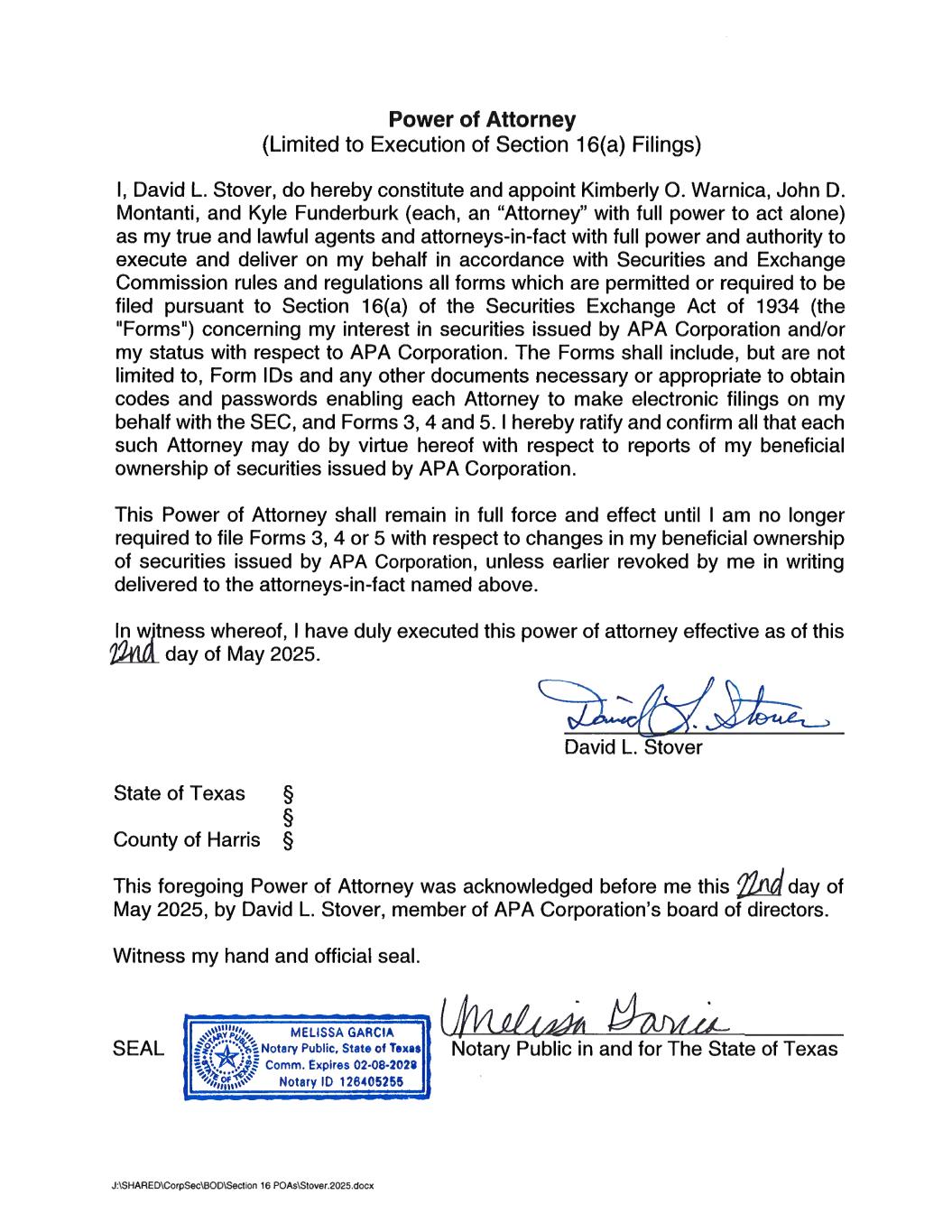 | John D. Montanti, Attorney-in-Fact for David L. Stover | 05/27/2025 | |